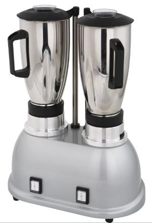 350х220х460 мм, 8 кг, 0,8кВт, 220В, 10000/15000 об/мин, нерж. стаканы 2x1,5л, серый, в одном стакане стандартный нож, во втором конус для молочных коктейлей