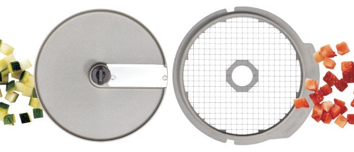 комплект 27513W: диск 29333W + решетка 106440, Устанавливается в рабочий отсек овощерезки на вал двигателя, изготовлен из нержавеющей стали с покрытием Mineral+. Используется для нарезки картофеля, моркови, кабачков, свеклы, репы на кубики размером 8х8х8 мм. Для моделей Robot Coupe CL30 Bistro, CL40, R402, R402 V.V.