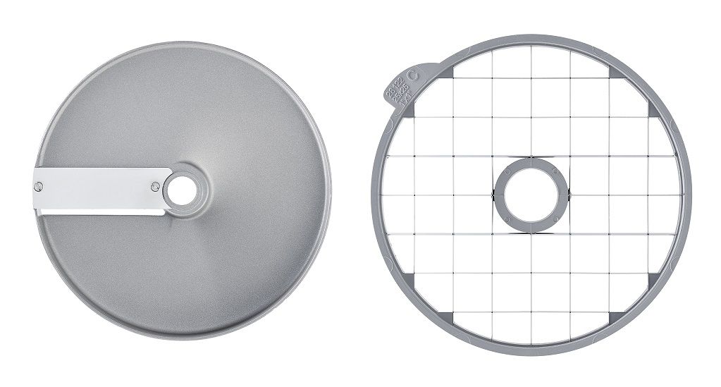 комплект 28115W: диск 28133W + решетка 28122, Устанавливается в рабочий отсек овощерезки на вал двигателя, используется для моделей CL50, CL50 Ultra, CL50 Gourmet, CL52, CL55, CL60, CL60 V.V., R502, R502 V.V., R752, R752 V.V., изготовлен из алюминия с покрытием Mineral+ . Используется для нарезки картофеля, кабачков, репы, картофеля фри, дыни, арбуза на кубики размером 25х25х25 мм.