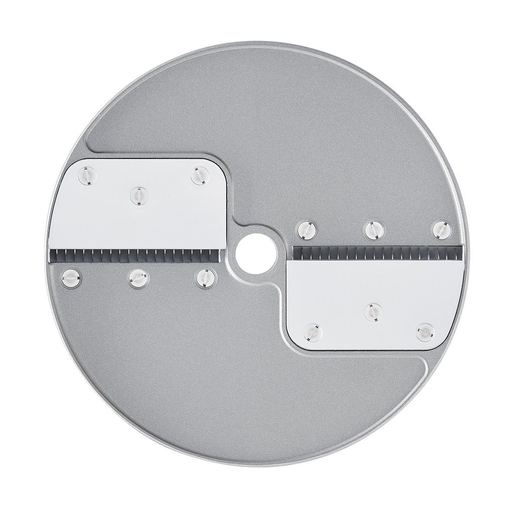 Устанавливается в рабочий отсек овощерезки на вал двигателя, используется для моделей CL50, CL50 Ultra, CL50 Gourmet, CL52, CL55, CL60, CL60 V.V., R502, R502 V.V., R752, R752 V.V., изготовлен из алюминия с покрытием Mineral+. Используется для нарезки баклажанов, свеклы, кабачков картофеля на соломку размером 4 х 4 мм
