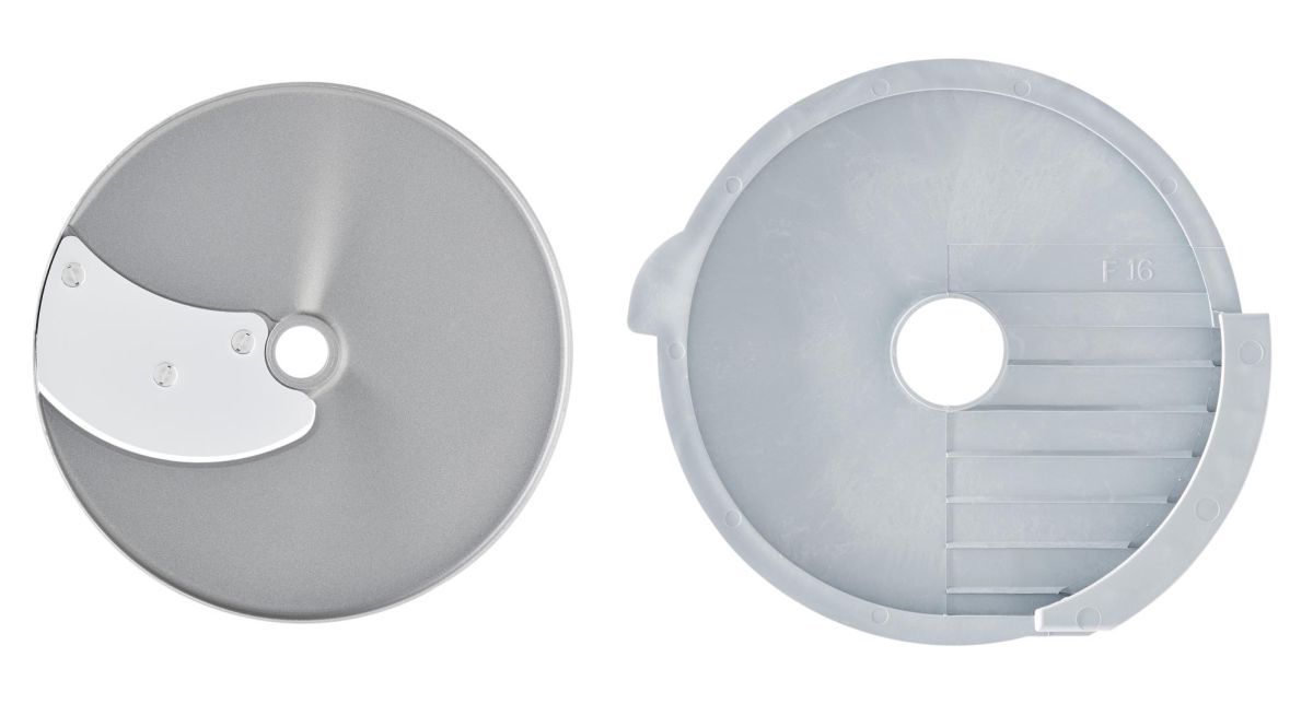 комплект 28158W: диск 29276W + решетка фри 101564, Устанавливается в рабочий отсек овощерезки на вал двигателя, используется для моделей для CL50, CL50 Ultra, CL50 Gourmet, CL52, CL55, CL60, CL60 V.V., R502, R502 V.V., R752, R752 V.V.. Изготовлен из алюминия с покрытием Mineral+. Используется для нарезки соломкой картофеля и других овощей.