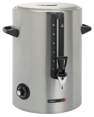 306x306x425 мм без ручек, с ручками d 390 мм, 3,2 кВт, 220В, настольный, подключение к водопроводу, с встроенным указателем уровня воды, высококачественная нержавеющая сталь CrNi 18-9, с двойными стенками для дополнительной надёжности; ёмкость 10 л, за один раз проливает 8 л, производительность в час: 240 чашек, 30 литров; время нагрева за 17 мин. с 20 до 97 C, регулируемая температура от 0 до +97C, защита от работы в сухую
