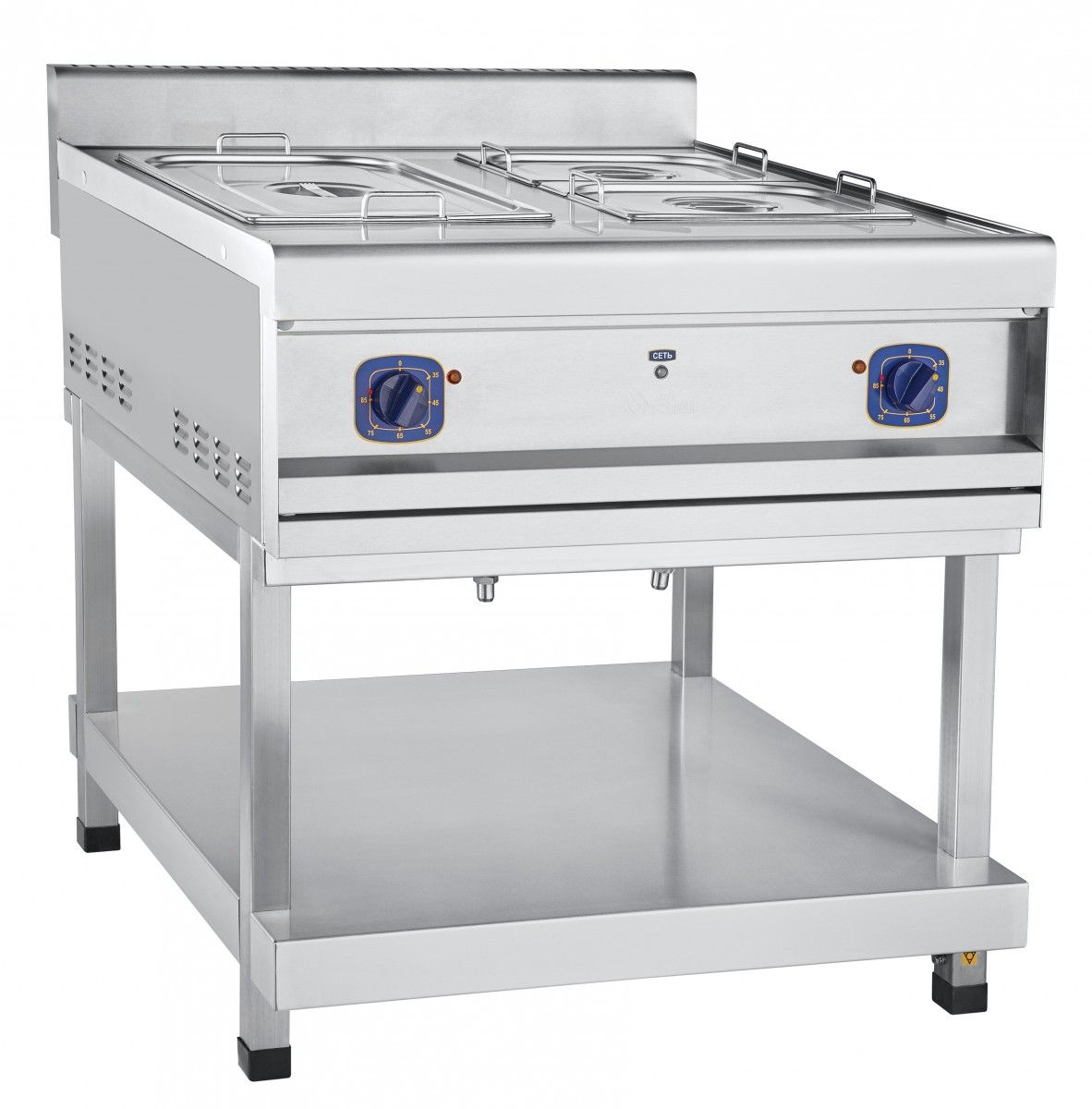800х900х950мм, Электромармит ЭМК-90/2П, ванна 8 л, 2хGN-1/2, 1хGN1/1, 900 серия, 800х900х950 мм, 1,5 кВт, 230В, подставка с полкой, вся нерж.