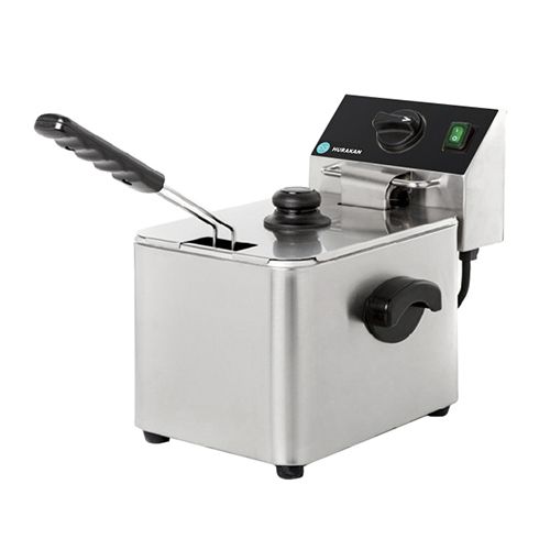 265x385x310, 220 В, 2,5 кВт, 5,4 кг, 1 ванна емкостью 4 л с крышкой, 1 фритюрная корзина, материал корпуса: нержавеющая сталь, температурный режим 60-190 С