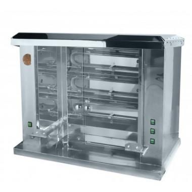 1298х582х731 мм, Гриль на 25 тушек, 3 шампура в первом ряду+2 шампура во втором ряду, выполнен полностью из нержавеющей стали, готовит курицу за 55 минут