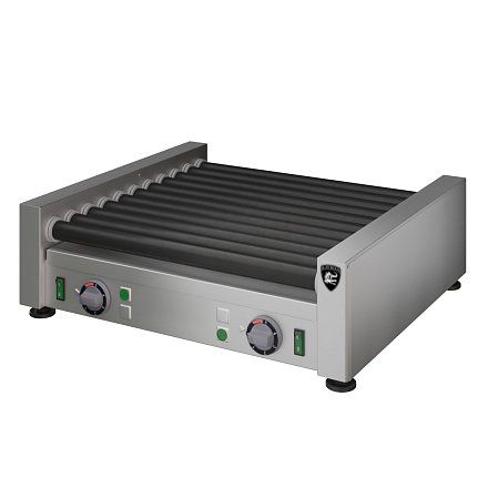 Заказ от 5шт. 536х485х170мм, 1,66 кВт, 220В, ролики из черной стали с антипригарным покрытием 11шт., длина ролика 450мм, кол-во одновременно приготавливаемых сосисок 10-30шт., время приготовления при полной загрузке около 8-14мин, время разогрева роликов до максимальной температуры 10 мин. Скорость вращения роликов 2 об/мин. Под роликами установлен поддон для сбора жира. Масса 15кг.