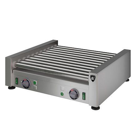 Заказ от 5шт. 536х485х170мм, 1,66 кВт, 220В, ролики из нержавеющей стали 11шт., длина ролика 450мм, кол-во одновременно приготавливаемых сосисок 10-30шт., время приготовления при полной загрузке около 8-14мин, время разогрева роликов до максимальной температуры 10 мин. Скорость вращения роликов 2 об/мин. Под роликами установлен поддон для сбора жира. Масса 15кг.