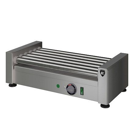 Заказ от 5шт. 536х280х170мм, 0,92 кВт, 220В, ролики из нержавеющей стали 6шт., длина ролика 450мм, кол-во одновременно приготавливаемых сосисок 5-15шт., время приготовления при полной загрузке около 8-14мин, время разогрева роликов до максимальной температуры 10 мин. Скорость вращения роликов 2 об/мин. Под роликами установлен поддон для сбора жира. Масса 8,8кг.