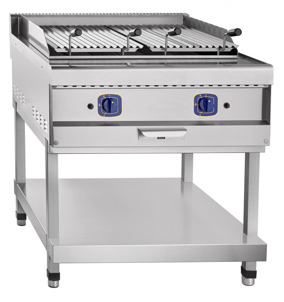 800х(899)921х(944)984мм, Гриль газовый ГК-90П, 2 решетки 348х600 мм, два положения по высоте, 900 серия, пьезорозжиг, газ-контроль, 2 горелки, 20 кВт, вся нерж.