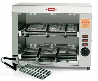 520х270х420 мм; 3,0кВт; 220В; Гриль-печь с горизонтальной загрузкой, с 2 решетчатыми полками и 6 зажимами. Четыре кварцевых инфракрасных нагревательных элемента. Эти печи достаточно просторны для подогревания больших бутербродов и булочек. Горизонтальная загрузка в печи позволяет приготовить или разогреть пиццу, клаб-сэндвич или брускетту. Корпус из нержавеющей стали обеспечивает гигиеничность.