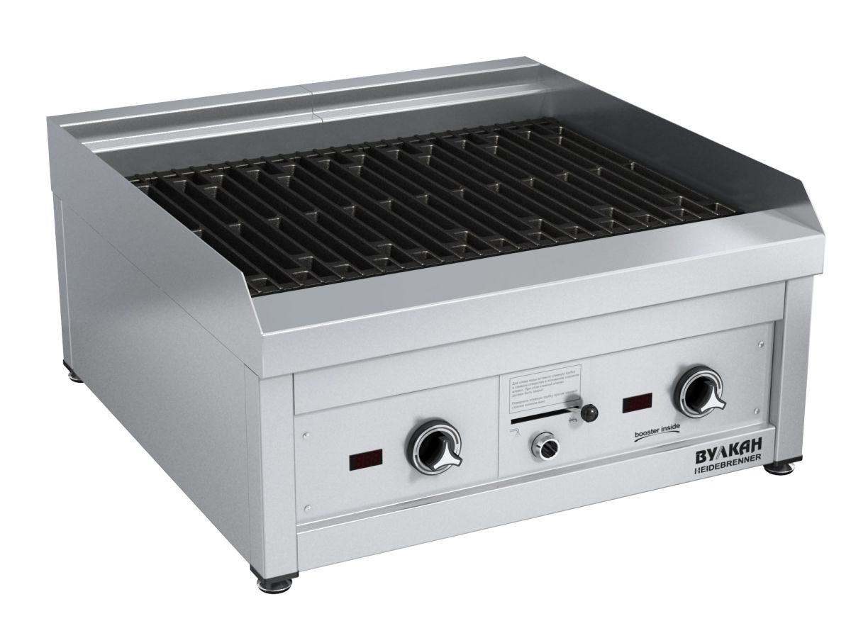 700х700х350мм, Настольный водяной гриль из нержавеющей стали с 2-мя зонами нагрева. Отличительная черта водяного гриля – наличие поддона с водой. Испаряющаяся вода создает эффект водяной бани, благодаря чему продукты не только равномерно прожариваются, но и приобретают необыкновенную сочность и мягкость. Использование воды также существенно снижает образование дыма и чада. Для качественной прожарки и получения рельефного узора используются чугунные решетки, обладающие отличными антипригарными свойствами, 2х4,5кВт, 380В, Брутто: 87кг