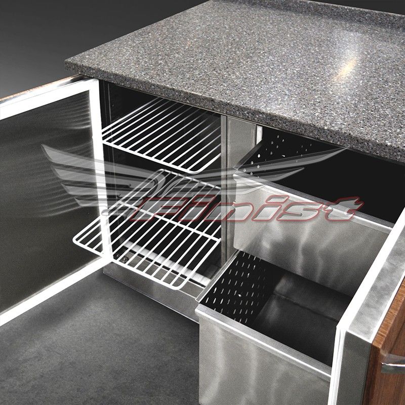 Холодильные столы PERFECTUM предназначены для хранения пищевых продуктов и напитков при температуре от -2 до +8°С. Столы могут применяться на предприятиях общественного питания, торговли и пищевых производствах. За счет новой технологии переноса агрегата назад, мы помогаем освобождать полезное пространство на полу. Отделка мдф и гранитом позволяет разместить стол на открытом видном месте или даже на домашней кухне. Холодильный стол выполнен из высококачественной пищевой нержавеющей стали. Используется электрический блок управления с функцией автоматической оттайки. Технические характеристики: Температурный режим -2+8,°С Микропроцессорный блок управления Компрессор Aspera, ACC, Electrolux, l'unite hermetique Динамическое охлаждение Напряжение питания: 220В/50Гц Автоматическая оттайка испарителя Цельнозаливной корпус Повышенная прочность столешницы холодильного стола
