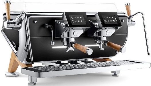1035x618x500 мм, 4,8 кВт, 220-400 В, мультибойлерная: объем бойлера 8,5 л+2 по 1,2 л, 2 ГРУППЫ, 2 крана подачи пара, 1 кран смешивания горячей воды; AWR, 5" дисплей для каждой группы, led-подсветка рабочего пространства, электрон. нагреватель чашек, пароотводы "Barista Attitude", система пара "Superdry", Steam Boost (SB), деревянные фильтр-холдеры, встроенная помпа