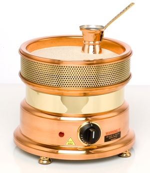290х290х240 мм, 6,49 кг, 220 В, 1,5 кВт, в комплекте песок+1турка(100мл); d=290мм; h=240мм, медь + латунь , 8 позиций регулировки температуры; время приготовления кофе 2,5-3 минуты; можно разместить до 3 турок объёмом 100 мл одновременно