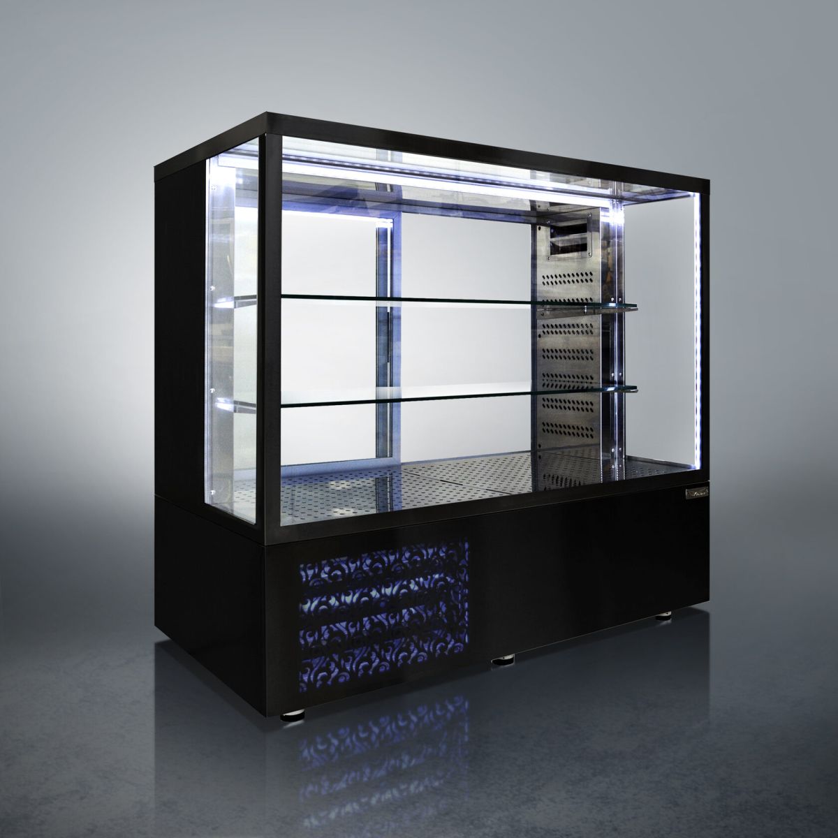 Кондитерская витрина LARA предназначена для экспозиции и хранения десертов, кондитерских изделий, тортов. Выкладка продуктов для демонстрации осуществляется на дно и промежуточные полки витрины. Оформление двойным стеклопакетом с четырех сторон позволяет удобно рассматривать гостям предложенный товар. Удобные дверцы купе позволяют легко наполнять витрину и доставать продукцию для гостей. Данная модель снабжена как внутренней, так и внешней светодиодной подсветкой. Технические характеристики: Температурный режим от 0…+7 Микропроцессорный блок управления Напряжение питания: 220В/50Гц 2 стеклянные полки, регулируемые по высоте Светодиодная подсветка Воздуховоды по боковым стенкам витрины