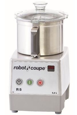 280х365х510 мм, Таймер, 2 скорости 1 500 и 3 000 об/мин. R5G (альтернативное название R5-2V) измельчает, приготавливает тонкие фарши, эмульсии, взбитые сливки, размельчает орехи и замешивает тесто, Трёхфазный 400В/50/3. Мощность 1500 Вт. 2 скорости 1500 и 3000 об/мин. 3,4 А - Штепсельная вилка не включена в комплект. Чаша из нержавеющей стали с ручкой объёмом 5,9 л, поставляется с ножом низкой посадки с 2 гладкими лезвиями.