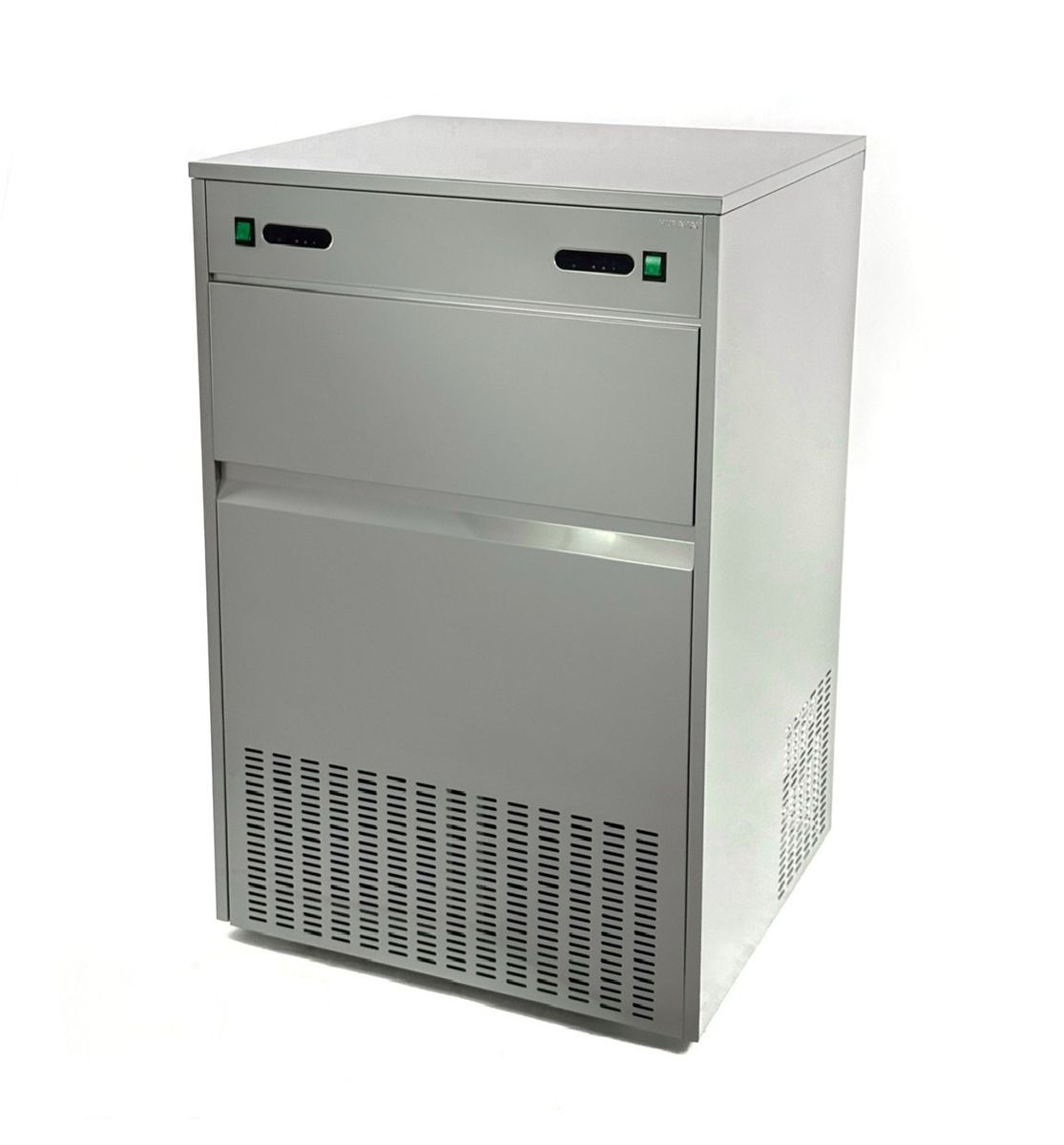 680x610x1050мм, 0,76кВт, 220В, 70кг, производительность 120 кг/сутки, бункер 50кг, воздушное охлаждение, с подключением к воде, пальчиковый лёд