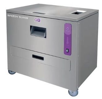 830x790x870 мм,115 кг, производительность 6000 шт/час, 220 V, 0.85 кВт, 1Ф, 50 Гц, Способ стерилизации - температурная обработка 50 С + ультрафиолетовая лампа; лоток выгрузки фронтальный. расход гранулята 5 кг - менять примерно раз в три месяца,