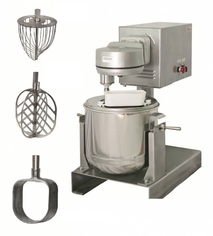 816x610x850мм, Машина взбивальная, 2 ск. двигатель, комплектуется дежой 25 л, насадки: четырехлопастной и прутковый взбиватель, фаршемешалка, 380В, 1,5 кВт, 105кг