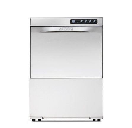 590x600x850, 380В, 6.7 кВт, кассета 500х500, 2 программы: 30 и 20 кассет в час, DD (DDE) - дозатор моющих и ополас. средств, DP (PS) - помпа слива, EP (XP или Extra Power) - доп. мощность для подключения к холодной воде, двойная дверь, ванна с наклоном для полного слива, Thermostop - ополаскивание начинается только при достижении t 85 градусов, обтекаемая форма крышки от падения капель, легкие моечные и ополаскивающие рукава - эффективны при низком напоре воды