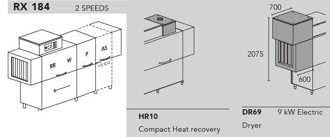 МАШИНА ПОСУДОМОЕЧНАЯ DIHR RX 184 DX+DDE+DR69+HR10