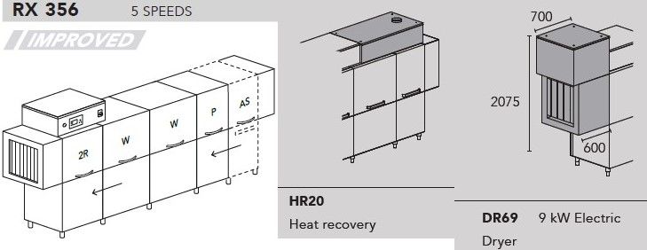 МАШИНА ПОСУДОМОЕЧНАЯ DIHR RX 356 DX+DDE+HR20+DR69