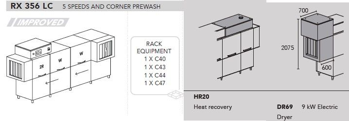 МАШИНА ПОСУДОМОЕЧНАЯ DIHR RX 356 LC SX+DDE+HR20+DR69