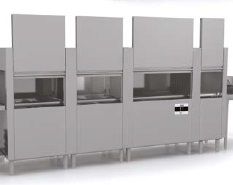 3948*770*1615 мм, 47,1 кВт + сушка 9 кВт, 380 В, производительность 320 кассет/час, предварительная мойка, мойка, усиленное ополаскивание, сушка L 9 кВт, дозаторы, кнопка аварийного стопа, рекуператор, деление на 3 части для удобства транспортировки