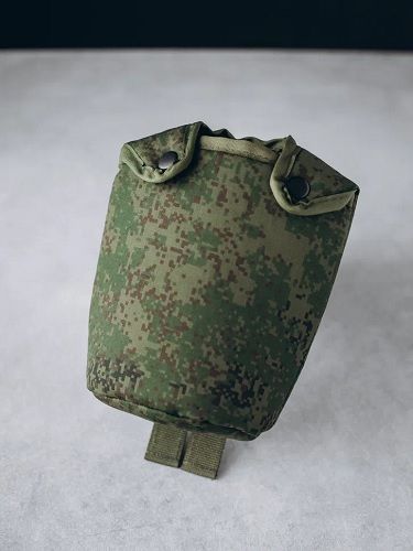 149*98*200, вес 103гр. Предназначен для переноски и хранения в походном положении фляги с кружкой. Изготовлен из ткани камуфлированной расцветки.