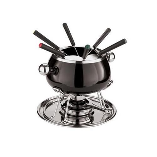 нержавеющая сталь; в комплекте чаша для фондю из алюминия, 6 вилок, подставка и горелка.