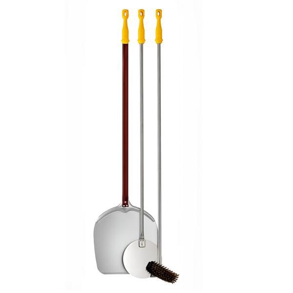 В комплекте: лопата для пиццы алюминиевая 33х33см h135см, лопата для пиццы из нержавеющей стали d20см h135см, щетка медная со скребком h135см. AISI 304