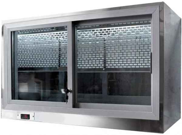 Настенные витрины предназначены для продажи напитков в охлажденном состоянии. Отличительная особенность — заднее расположение агрегатной части, что позволяет разместить витрину на открытом месте. Стильный дизайн витрины органично впишется в любой интерьер. Выкладка напитков для демонстрации осуществляется на дно и промежуточные полки витрины. Оформление стеклопакетом (толщина 16 мм) позволяет рассматривать гостям предложенный товар. С помощью дверей купе можно легко наполнять витрину и доставать продукцию. Технические характеристики: Температурный режим +5…+10,°С Микропроцессорный блок управления Статическое охлаждение Напряжение питания: 220В Мощность 0,5кВт Температура окружающей среды +10…+25,°С