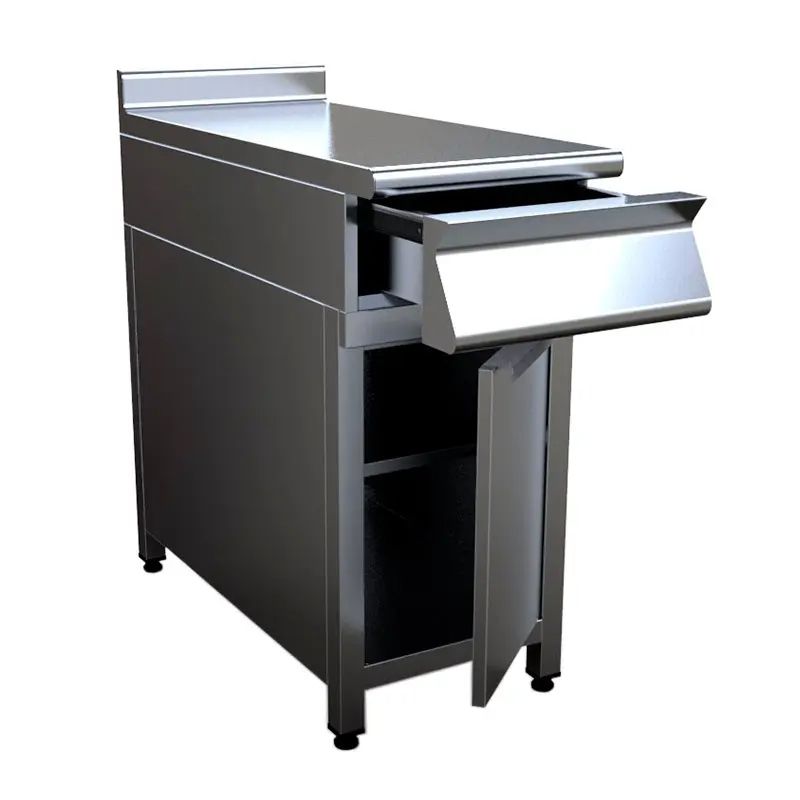 600х900х870мм, Нейтральный модуль шириной 60см закрытый, с выдвижным ящиком, распашная дверка (дверки), корпус из н.с. AISI 430, каркас проф. труба 40х40мм, полка сплошная, регулируемые по высоте ножки, вес 52кг.