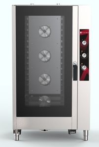 1051х938х1900 мм, 400В, 28,5 кВт, электромеханическая панель управления, вкатная тележка 20 уровней (в комплекте), направляющие GN 1/1, 1 скорость вентиляторов