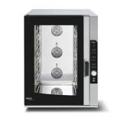 750x723x553мм, 4хGN1/1-600х400, 220/380В, 6.7кВт, цифровая панель управления, реверс, увлажнение, рабочая температура до 260*C, возможность ввода до 99 программ