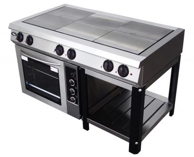 1400x800x860, 260 кг, 6 конфорок, большая духовка GN 2/1 (конвекционная), 4 направляющих под противни и гастроемкости, 90 мм между направляющими, 2 термостата 50-300С, исполнение духовки - внутри и снаружи нержавеющая сталь, дверь духовки со стеклом(закаленным), подсветка камеры духовки, таймер духовки со звуковой сигнализацией 120 минут, усиленные шарниры двери духовки, комплектация духовки противнем и решеткой из нержавеющей стали, разборная контструкция плиты и духовки, 22.7 кВт 380В, г.брутто 1470х900х1060, 303 кг