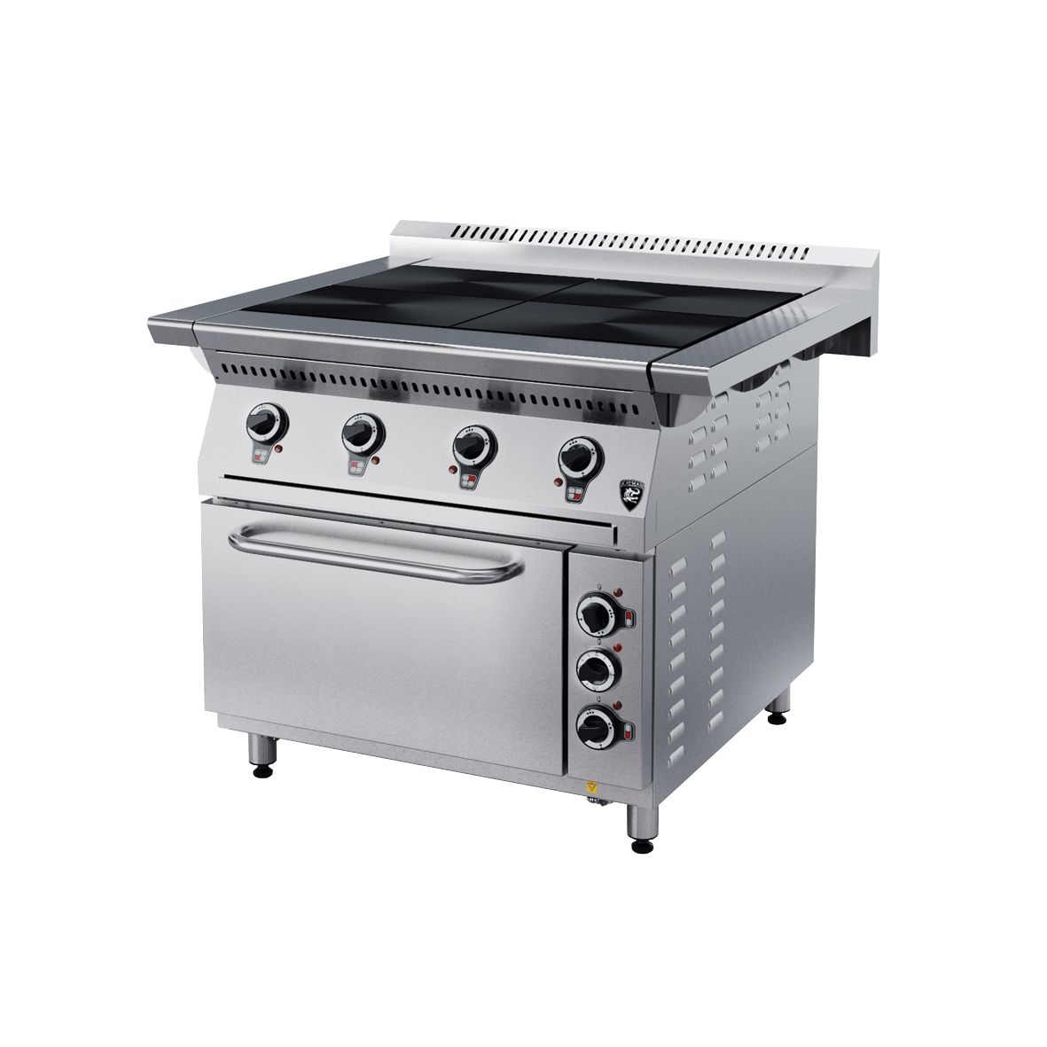 840х850х860мм- столешница и лицевая часть - нерж. сталь;- чугунные конфорки 295х417 мм:- все регуляторы расположены на передней панели;- мощность каждой конфорки 3,0 кВт;- разогрев до 480 С за 30 мин;- внутренние размеры жарочного шкафа - 538х535х290 мм;- материал изготовления жарочного шкафа - углеродистая сталь;- в комплекте противни 470х530х30 мм– 3 шт. угл .сталь;- диапазон регулирования температуры жарочного шкафа +20...+270 С;- разогрев жарочного шкафа до +240 С за 30 мин;- аварийный терморегулятор от перегрева +324 С;- раздельная регулировка мощности верхних и нижних ТЭНов;- оснащена комплектом боковых столешниц, нерж;- регулируемые по высоте ножки..Количество конфорок 4. Площадь жарочной поверхности, не более м2 0,48 м2, Температура рабочей поверхности конфорок не более 480 С.
