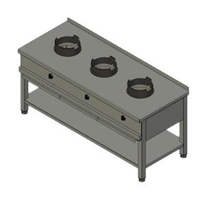 1850х700х800мм, Мощность горелок, кВт: 3х14,9, Тип горелки: бородавочная, Расход природного (сжиж.) газа, м3/ч (кг/ч): 4,54 (3,53), Резьба входного патрубка газопровода: G3/4-B, Газконтроль, запальная горелка, 3 кольцевые ВОК-насадки, пьезоподжиг