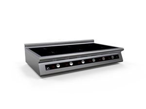1175х900х260 Плита индукционная настольная, 6 конфорок мощностью 6х3,5кВт, электронная панель управления с цифровой индикацией, 13 уровней нагрева, таймер до 180мин., съемный жировой фильтр, корпус из н.с. AISI 304, регулируемые по высоте ножки, рабочая поверхность - стеклокерамика 6мм, 21 кВт, 380В.