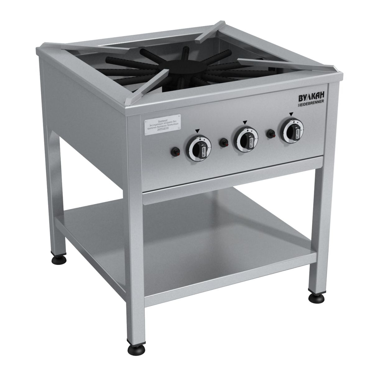 650х650х720мм, Плита-табурет из нержавеющей стали со звездообразной горелкой, независимое управление каждой из 3-ех зон нагрева. Газконтроль, запальная горелка, пьезоподжиг каждой зоны, поддон для сбора мусора, работа на природном или сжиженном газе, 3х5,7кВт, Расход газа: прир (сжиж)-1,75 (1,36)м3?ч (кг/ч)