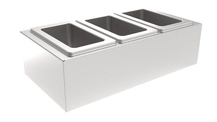 Габариты 350х185х100мм, изготовлена из пищевой нержавеющей стали AISI430. Представляет собой подставку для гастроемкостей глубиной до 100мм. комплект входит Гастроемкость GN-1/9 Н-100 – 3шт. Нормируемый размер гастроемкостей обеспечивает высокую универсальность и взаимозаменяемость. Вес 1,25кг.