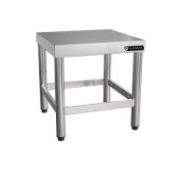Габариты 950х500х280мм, нагрузка на столешницу 80кг, столешница AISI 430 0,8мм, материал каркаса AISI 201 зеркальная 1,5мм. Столешница снизу усилена оцинкованным швеллером. Профиль ножек круглая труба. Стойки каркаса выполнены из нержавеющей трубы O40 мм стали AISI 201 с приваренными уголками для крепления столешницы (в верхней части) и усиливающих перемычек (в нижней части). В стойки запрессованы регулируемые по высоте пластиковые ножки, позволяющие изменять высоту подставки в пределах 20 мм, пластиковое основание, не повреждает половое покрытие при эксплуатации подставки. Конструкция подтоварника разборная.Подставки предназначены для использования на предприятиях общественного питания,-А также на продуктовых складах и магазинах, для временного складирования кухонного инвентаря и продуктов питания. Могут служить подставкой под котлы с первыми блюдами.
