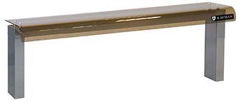 1670х330х527мм. Номинальная мощность подключаемого модуля 14Вт. Полка устанавливается на столешницу модуля линии раздачи GUSTO и служит для выкладки тарелок с готовыми блюдами. Конструкция сборная, бескаркасная. Полка выполнена из нержавеющей стали AISI430. В верхней части полки располагается гнутое стекло. Одноярусная полка оснащена одним светильником, освещающим столешницу.