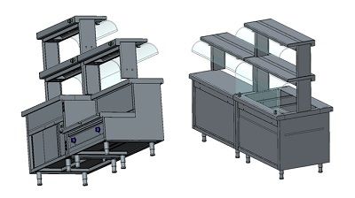 1370х367х400мм, 1 уровень (нижний): полка из нержавеющей стали, с обогревом и с освещением, с удлиненной стеклянной защитой со стороны клиента, 2 уровень (верхний): полка из нержавеющей стали, с обогревом и с освещением, с классической стеклянной защитой со стороны клиента