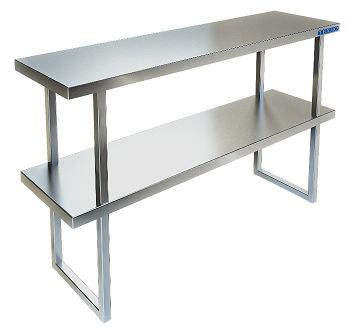 400х400х800мм, Полка настольная для столов со столешницей ЛДСП разборная из нержавеющей стали марки AISI 430 толщиной 0,8мм, с усилителем, 2 яруса. Боковины (стойки) из трубы 20х20 нержавеющей стали марки AISI 430 толщиной 1,2мм. Крепление к столу болтовое через отверстие в столешнице. Полка поставляется в разобранном виде.