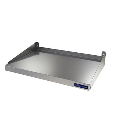Габариты 400х500мм, максимальная равномерно распределенная нагрузка 25кг, материал нержавеющая сталь AISI 430 0,8мм. Полка под СВЧ печи, имеет борт, защищающий стеновые панели от воздействия влаги в моечных отделениях,-А также предохраняющий от попаданий продуктов на стену и в щель между стеной и полкой. Полки крепятся на стене с помощью дюбелей и шурупов, входящих в комплект полки. Вес 3,2кг.