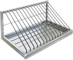 600х350х270, полка сварная из стали AISI 304, 15 секций (на 15 крышек), съемный поддон,выполнена из трубы 20х20 и прутка, 0,02V, м3, Задняя стенка и основание из листа нержавеющей стали AISI 304 толщина 0,8 мм, пруток AISI 304 O 6 мм.,