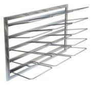 600х355х270мм, Полка настенная для досок сварная из нержавеющей стали марки AISI 304, 9 секций на 9 досок, выполнена из трубы 20х20 и прутка Д-6мм.Имеет отверстие с вырезом "замочная скважина" для крепления к стене.Торцы труб закрыты заглушками. Поддон для сбора воды. Полка поставляется в собранном виде.