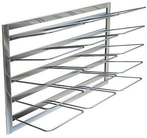 600х250х450мм, Полка настенная для досок сварная, 5 секций на 10 досок, раскладывающаяся конструкция из нержавеющей стали марки AISI 304 толщиной 0,8мм и прутка диаметром 6мм. Имеет накладки с вырезом "замочная скважина" для крепления к стене. Полка поставляется в собранном виде.