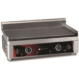 540х350х240 мм, 230В, 2,2 кВт, гладкая поверхность (S), чугун, размер поверхности 520х240 мм, две зоны нагрева с независимым управлением, термостат 50- 300C, корпус из нержавеющей стали, емкость для сбора жира